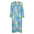 Easy dress in a pretty light blue flower print, accented with a golden yellow and fresh green leaves