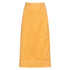 Side zip and button. Created to be worn on the lower waist. A deep pleated border weights the skirt at the hem.